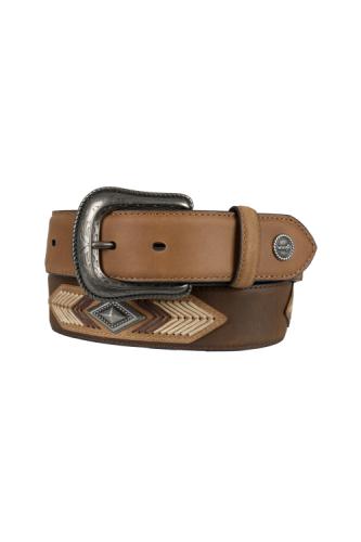 Contrast tabs with handlace detail, feature conchos, removable buckle, Wrangler® iconic concho, antique silver hardware
